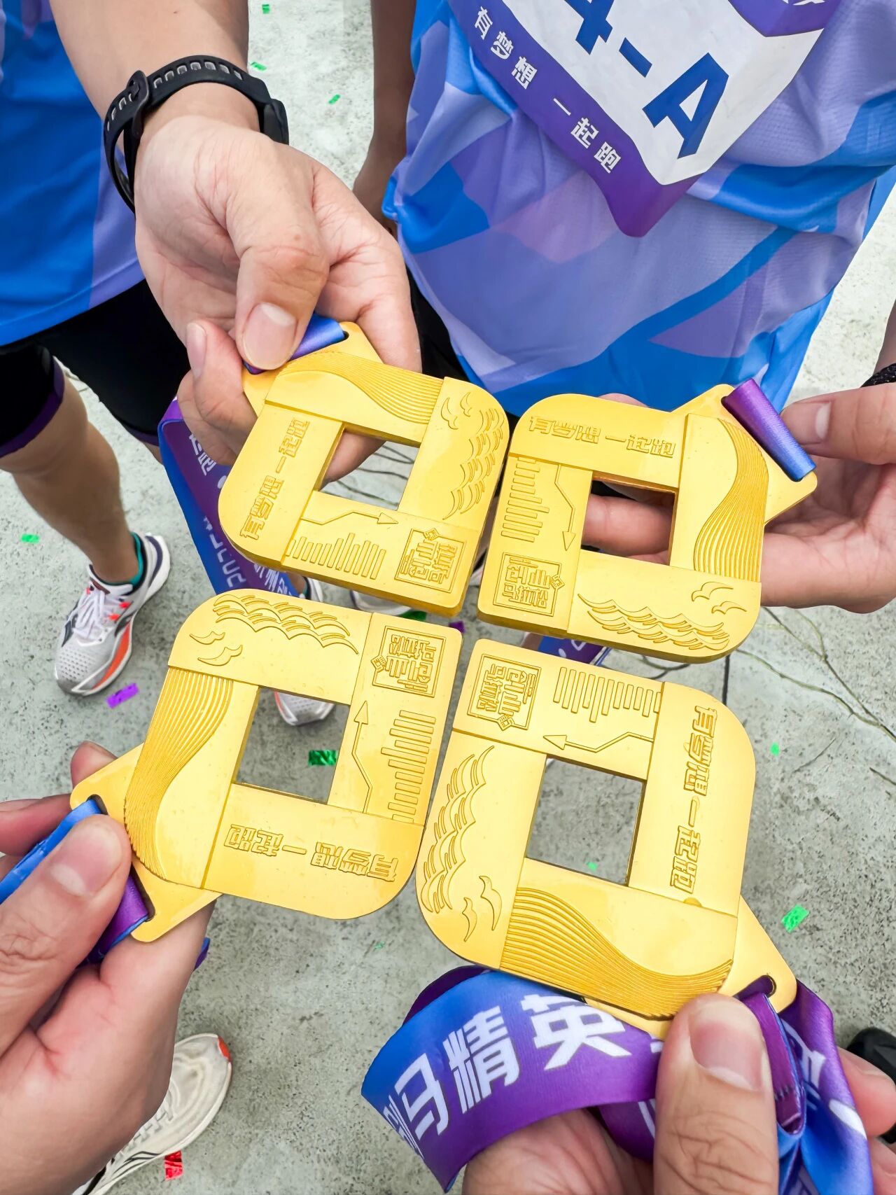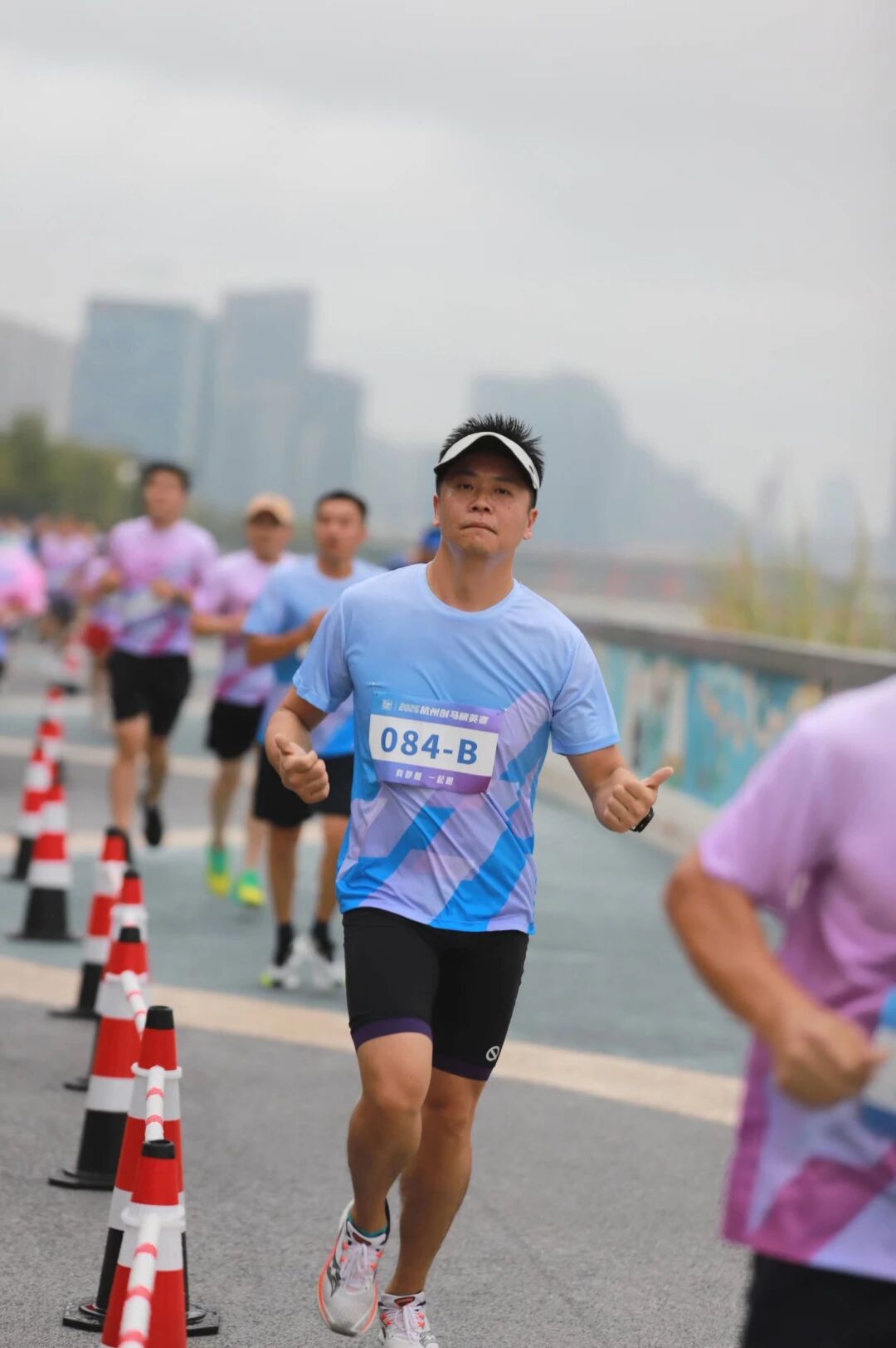 賽中,他們保持穩(wěn)定的配速,沿之江綠道穩(wěn)步前行。雨水模糊了視線,卻從未打亂奔跑的節(jié)奏。最終,所有人依次沖過(guò)終點(diǎn),圓滿(mǎn)完成挑戰(zhàn)。