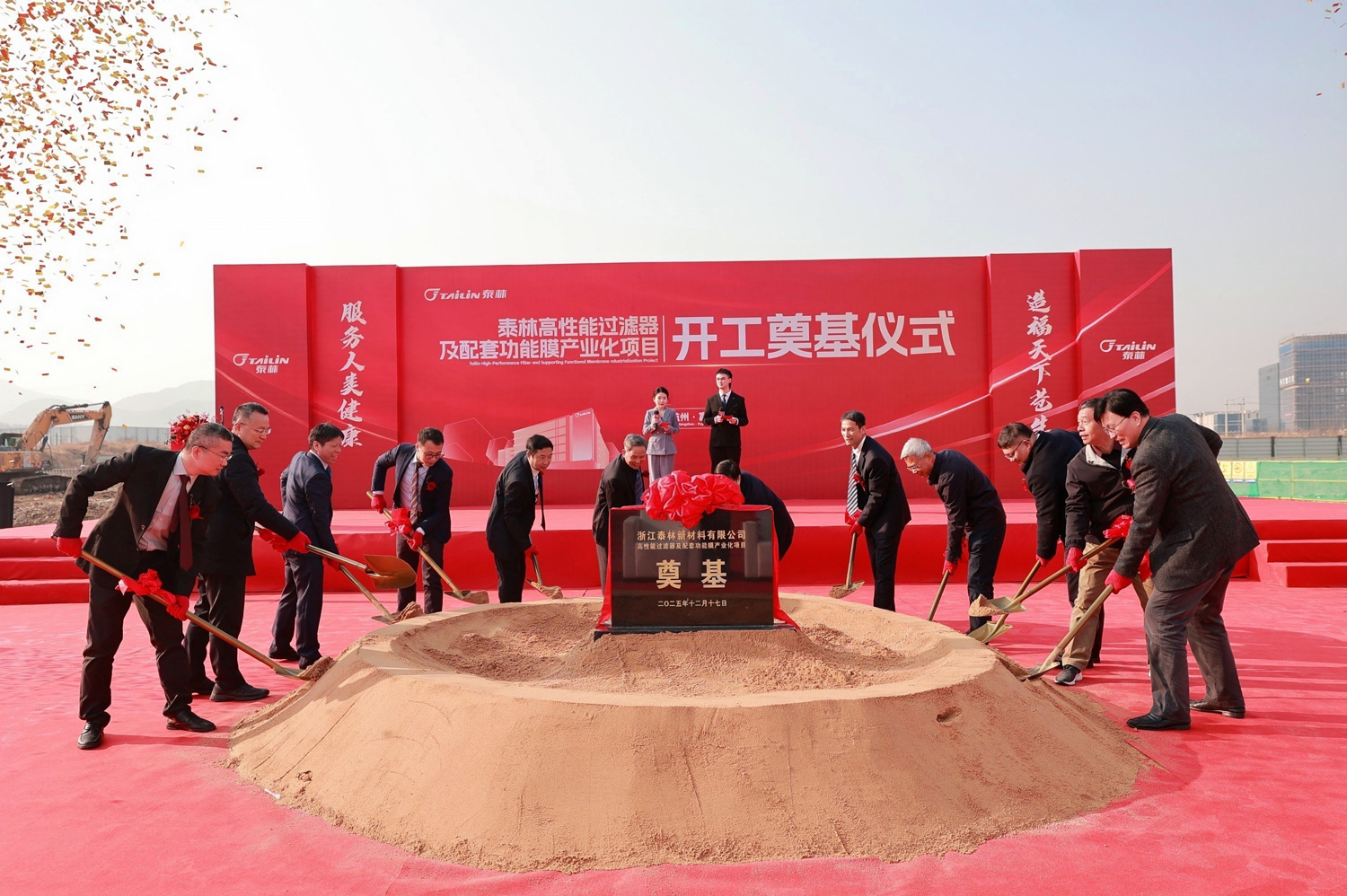2025年12月17日上午,浙江泰林新材料有限公司高性能過濾器及配套功能膜產(chǎn)業(yè)化項(xiàng)目開工奠基儀式隆重舉行。中共杭州市富陽區(qū)委常委、杭州富春灣新城管委會主任孫偉,杭州市富陽區(qū)靈橋鎮(zhèn)黨委書記章繪,浙江省新材料產(chǎn)業(yè)協(xié)會理事長、浙江大學(xué)教授、浙江省特級專家楊輝,泰林生物董事長、總裁葉大林,泰林生物副總裁、泰林新材料總經(jīng)理沈志林,泰林生物副總裁、泰林醫(yī)學(xué)工程總經(jīng)理夏信群,泰林生物獨(dú)立董事董明、倪崖、厲國威,項(xiàng)目設(shè)計(jì)單位、總包單位、監(jiān)理單位代表,泰林生物及旗下子公司管理團(tuán)隊(duì)均蒞臨現(xiàn)場,共同見證了這一重要時刻!